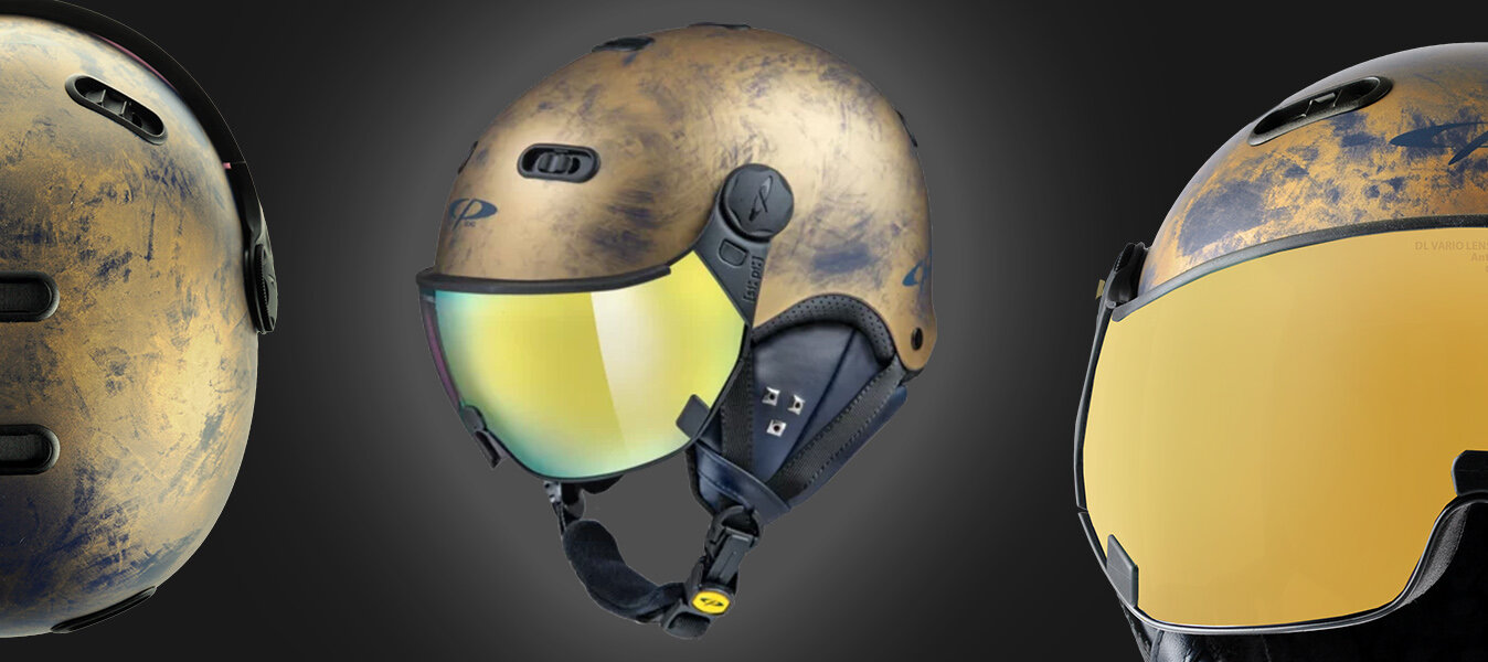 Ein echtes Unikat: Der goldene CARACHILLO Vintage überzeugt optisch mit einem Design-Print auf Basis einer speziellen Veredelungstechnik, sodass kein Helm dem anderen gleicht. Handgemacht und einzigartig! Die weiteren CARACHILLO-Modelle sind dank knalligen Farbvarianten ein besonderer Hingucker auf der Piste.