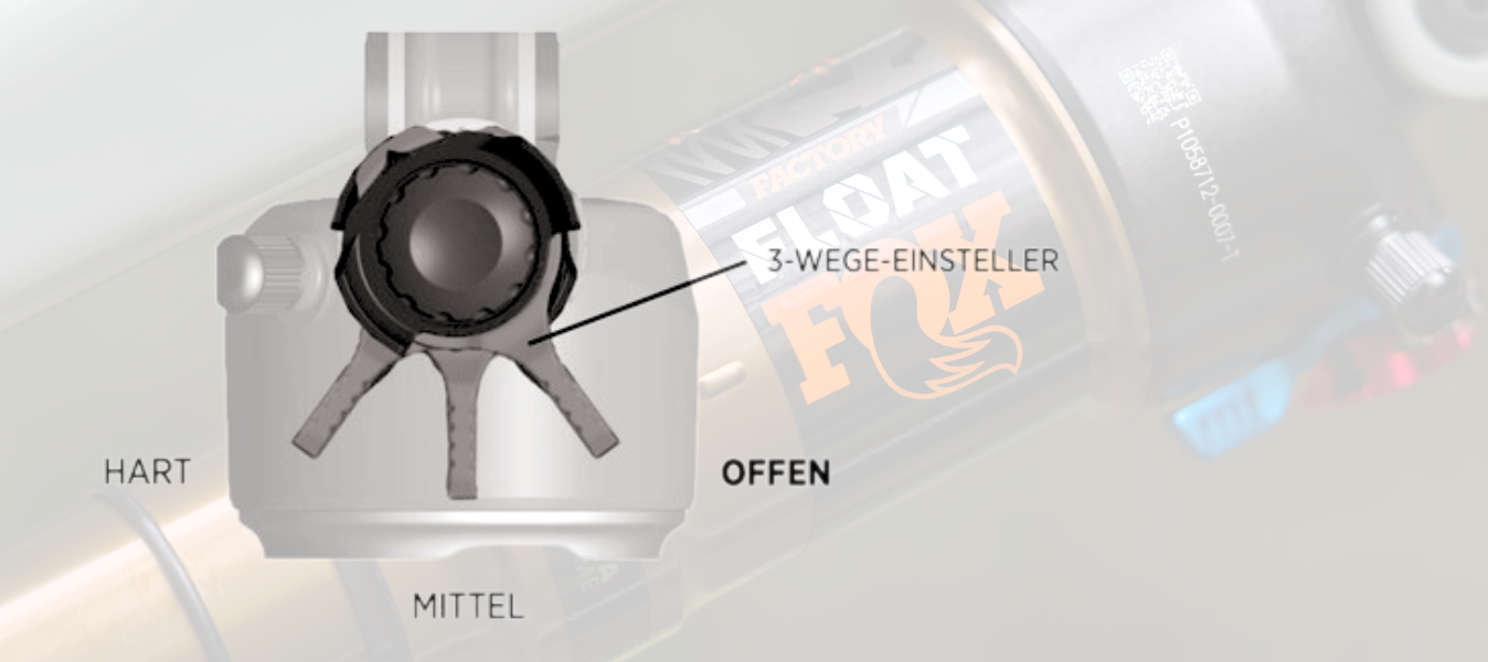 Dank des 3-Wege-Einstellers kann das Federverhalten des Dämpfers während der Fahrt an das Gelände angepasst werden.