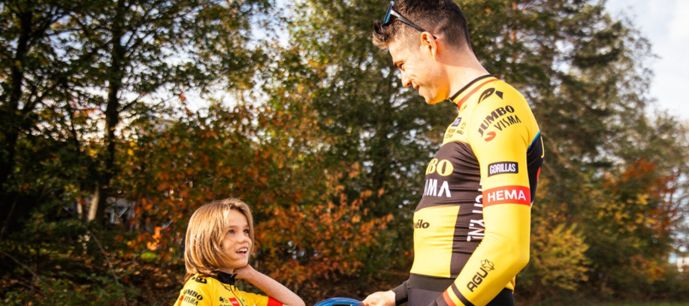 - Poste ein Foto oder Video von dir, auf dem du eine der Siegerposen von Wout nachstellst. Vergiss nicht: «Use your head» und trage dabei einen Helm!