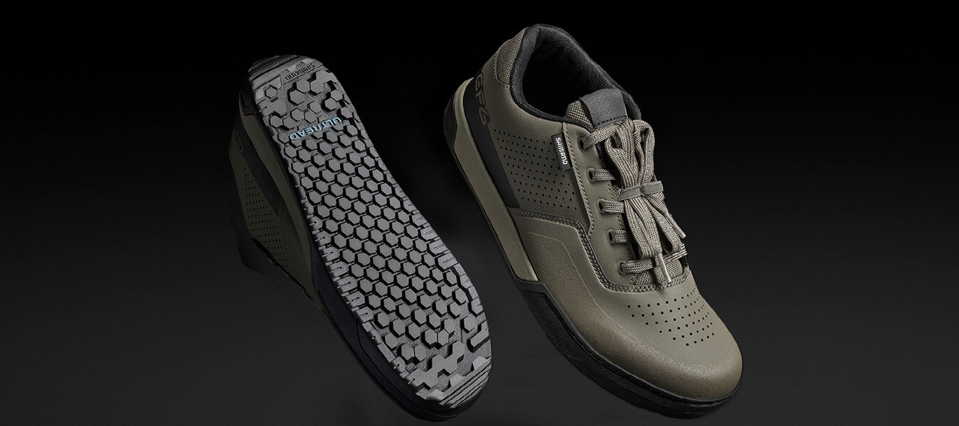 Neben der Gravity-Enduro-Schuhserie enthüllt Shimano ebenfalls die brandneuen Gravity-Flat Modelle GF8 und GF6. Diese innovative Reihe bietet sicheren Halt sowie Stabilität und sorgt so für mehr Vertrauen auf dem Bike, selbst auf technisch anspruchsvollen Trails.
