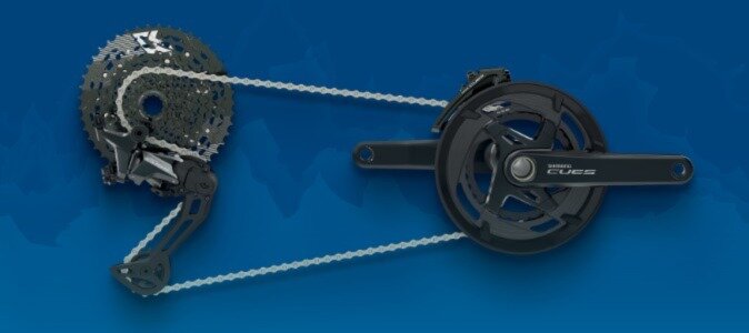 Die neue Shimano Produktelinie CUES bietet eine noch nie dagewesene Kompatibilität über die gesamten Antriebe der mittleren Klasse. Diverse CUES-Komponenten der 9-, 10- und 11-fach-Antriebe können über zahlreiche Anwendungsbereiche und Fahrstile hinweg kombiniert werden. So ergeben sich mit weniger Komponenten unzählige Kombinationsmöglichkeiten.