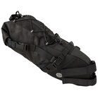 Satteltaschen gibt es in der alltäglichen Grösse von ca. 0,6 l. Diese Tasche ist eher für kürzere Touren gedacht und bietet Platz für Ersatzschläuche und kleines Werkzeug. Für eine Bikepacking-Tour empfiehlt sich jedoch eine Satteltasche mit mehr Volumen. Hier finden zum Beispiel das Zelt oder die Schuhe Platz. Wichtig dabei: Schwere Gegenstände unten in die Tasche packen, damit das Gewicht näher am Mittelpunkt des Velos liegt. -