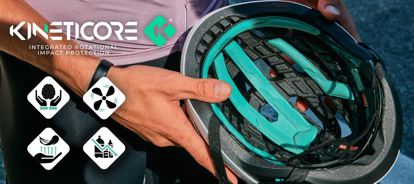Die Verbesserung des Schutzes für Velofahrerinnen und Velofahrer ist eine komplexe Aufgabe. KinetiCore ist das Ergebnis einer zehnjährigen Forschung nach einer neuen, fortschrittlichen Technologie. Sie bietet Schutz vor den Auswirkungen direkter und rotierender Kräfte. Hierzu dienen einzigartige EPS-Schaumblöcke als “Knautschzonen”, die bei einem Aufprall zusammengedrückt werden. Sie absorbieren somit die kinetische Energie, die andernfalls auf den Kopf und das Gehirn einwirken würde.