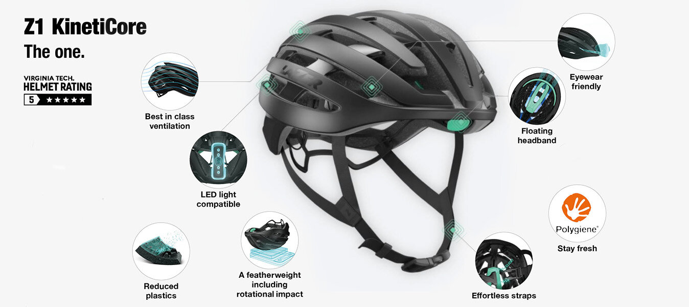 Wie die meisten Lazer KinetiCore Helme erhielt auch der Z1 eine 5-Sterne-Bewertung und somit die Bestnote von Virginia Tech (Virginia Polytechnic Institute and State University). So erfüllt er die wichtigsten Anforderungen in punkto Sicherheit auf der Strasse.
