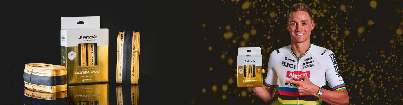 Nur ein Veloreifen kann den Titel des siegreichsten Reifens des Jahres 2023 für sich beanspruchen. Der Vittoria Corsa PRO schaffte, was in einer Saison unmöglich schien: Er gewann Mailand-Sanremo, Paris-Roubaix, Giro d'Italia, Tour de France, La Vuelta und die Strassenweltmeisterschaft. Um dieses goldene Jahr zu feiern, hat Vittoria den Corsa PRO Gold in limitierter Auflage mit goldenen Seitenwänden lanciert.