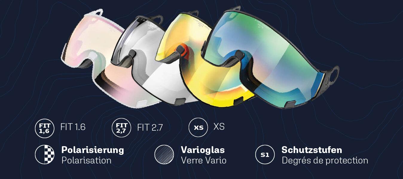 Dein Skihelm, ganz persönlich. Mit den wechselbaren Visieren von cp wird jeder Wintersporttag zu einem einzigartigen Erlebnis. Ob Sonnenschein, Schneetreiben oder einfach nur eine Veränderung des Looks – finde das perfekte Visier für jede Situation. Brillenträger? Kein Problem! Die grosse Auswahl an Visiere bietet dir den nötigen Komfort und eine klare Sicht.