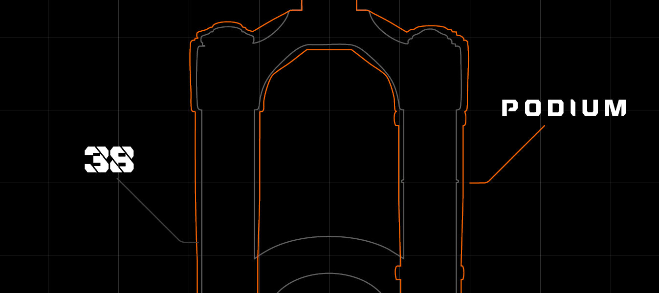Die Podium ist mit einer speziell abgestimmten GRIP X2-Kartusche ausgestattet, der für seine vierfach einstellbare Dämpfung und seine rennerprobte Kontrolle bekannt ist. Mit einer verbesserten Druckstufendämpfung, die auf die reduzierte Reibung der Gabel abgestimmt ist, und einer leicht schnelleren Zugstufe, die die geringere ungefederte Masse ausgleicht, ist die Dämpfungskurve der Podium für aggressive Abfahrten, Enduro und die Dominanz im E-MTB-Bereich ausgelegt.